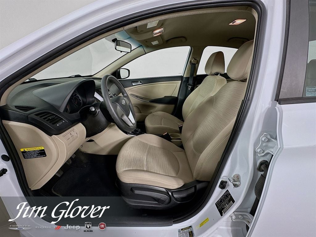 Accent SE, 4D Sedan, 1.6L I4 DGI DOHC 16V, 6-Speed Manual, FWD, Century White, Beige Cloth.